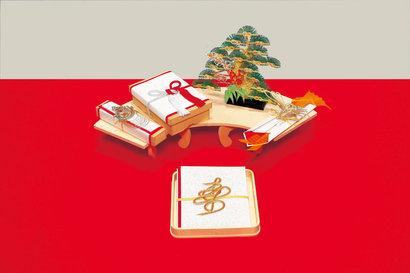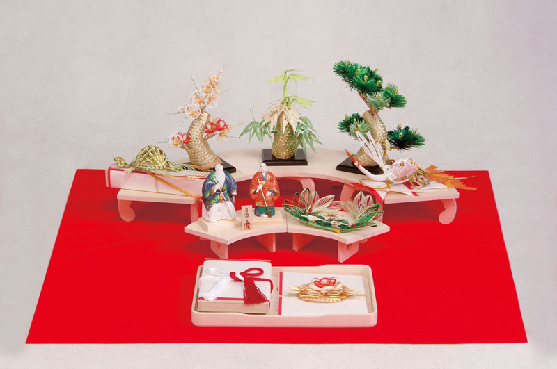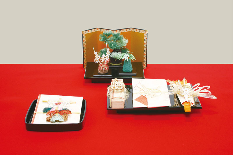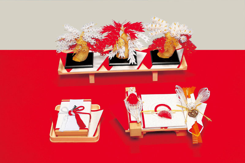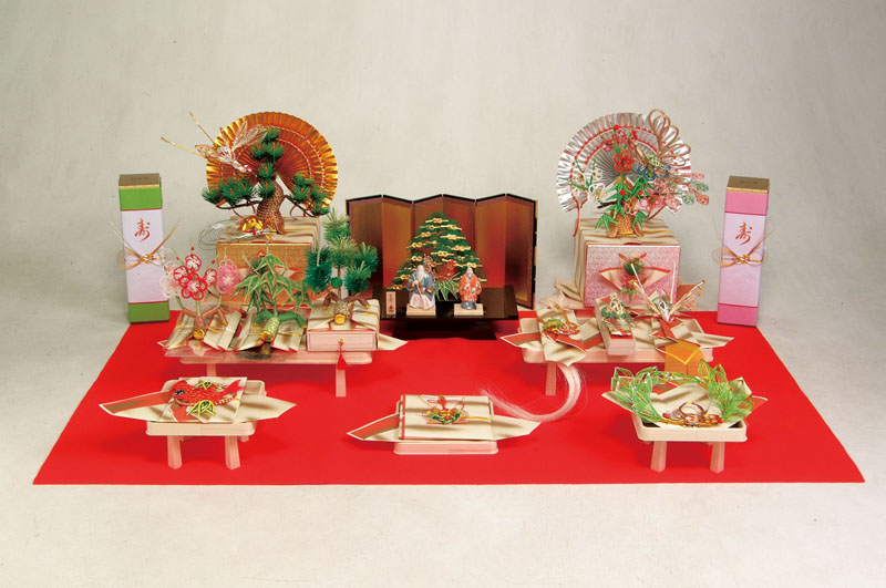 近年、住宅事情等により、結納茶が飾られた派手で豪華な結納茶は需要が減り、コンパクトな結納品が主流となっております。